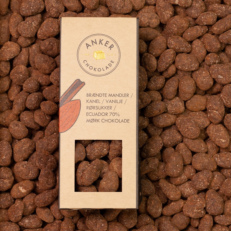 105g brændte Valencia mandler / kanel / vanilje / Ecuador 70% mørk chokolade