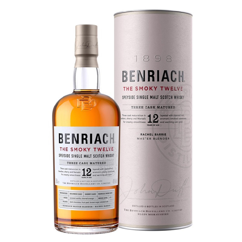 “The Smoky Twelve” fra Benriach er en mesterlig fusion af frugtige, maltede og egeprægede nuancer, elegant integreret med et røget præg. Denne whisky har gennemgået en lidt utraditionel modning i en trefoldig kombination af fadtyper: Bourbonfade, Sherryfade og Marsalafade. Denne unikke sammensætning har skabt en whisky med en cremet og blød struktur, rig på lag af moden frugt, en markant aromatisk røget sødme og indtagende varme krydderier fra egetræ.