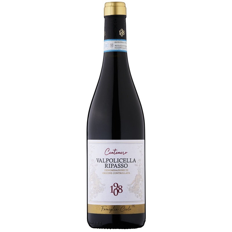 Cielo e Terra – Centenero Valpolicella Ripasso 2022 er intens rubinrød i glasset og fine aromaer af kirsebær og blomme kravler villigt over glassets kant. I baggrunden aner man aromatiske urter, vanilje og cedertræ. I munden føles den meget velkommende, når den silkeglat glider forbi ganen. Balsamiske undertoner og fyldig skovbund træder først frem og afløses i takt med den flotte finish af fyldige frugtnoter og behagelige bagekrydderier.