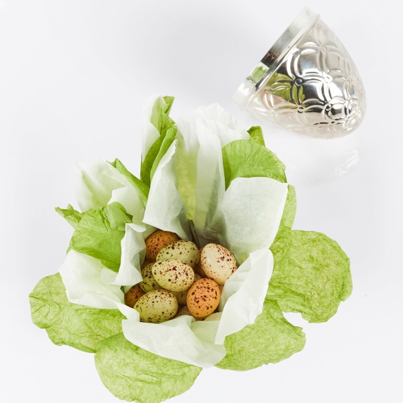 Det ikoniske sølvæg er både en påsketradition og kærlig forårsgave, fyldt med fine hånddekorerede, økologiske chokoladeæg i smukke farver og med skønne fyldninger.