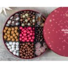 Lækker gaveæske med masser af lækkerier til at dele. Sprøde kiksekugler med chokolade, snebolde, karameller, chokoladelakrids, hindbærlakrids, chokoladepoletter med mintkaramel, orangemandler og mørke chokoladepoletter med sprød dronningemandel på toppen. Helt perfekt til den søde juletid.