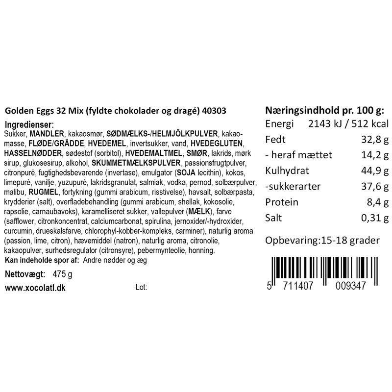 | Allergener | Kan indeholde spor af andre NØDDER og ÆG |