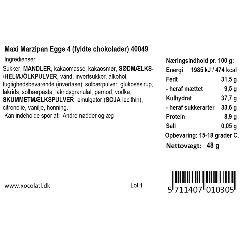 | Allergener | Kan indeholde spor af andre NØDDER og ÆG |