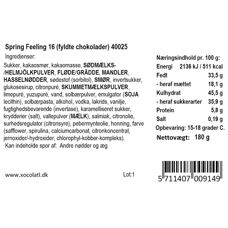 | Allergener | Kan indeholde spor af andre NØDDER og ÆG |